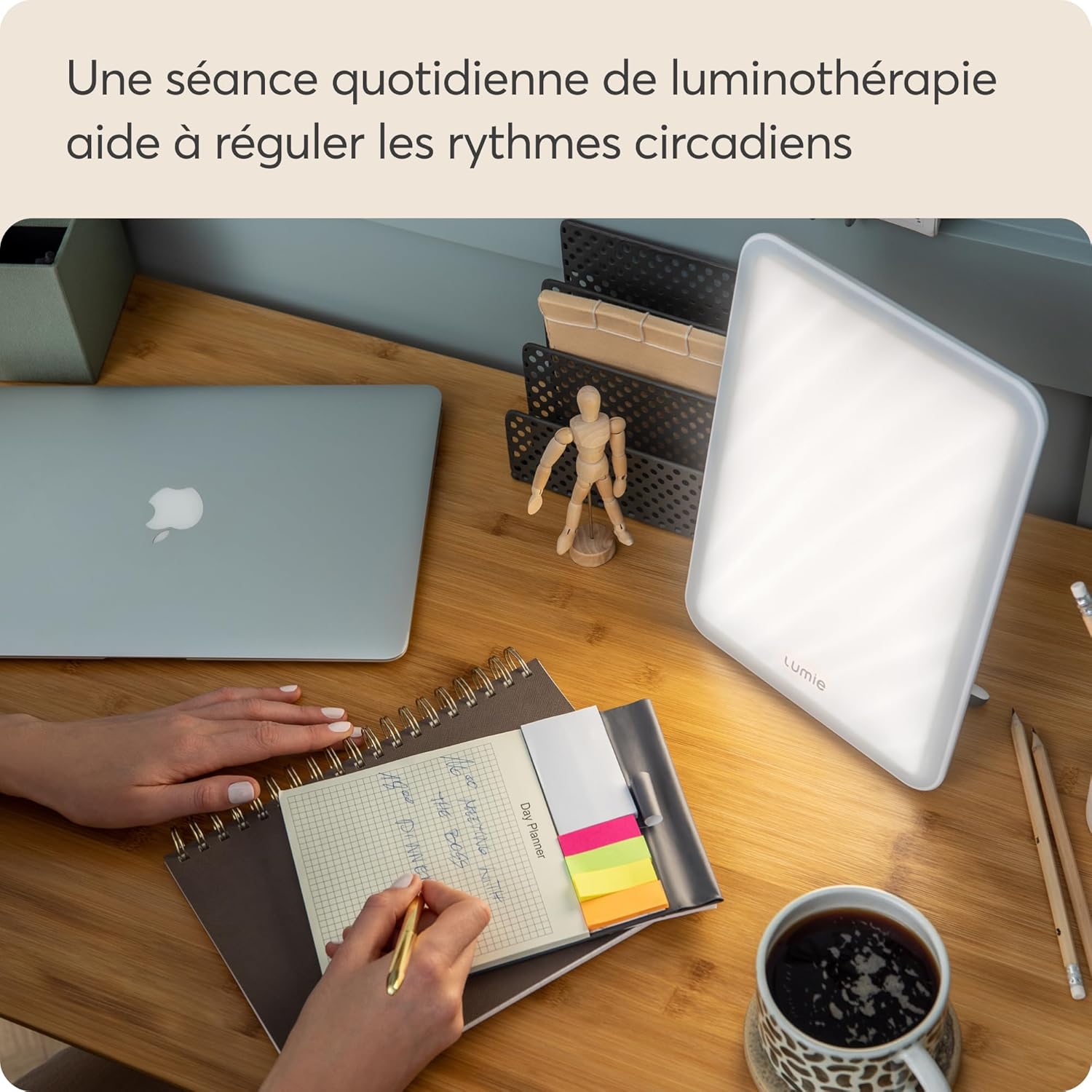 Facile à intégrer dans votre routine quotidienne, la Lumie VITAMIN'L se place à une distance recommandée de 30 cm pour une efficacité optimale. Que ce soit pendant votre petit-déjeuner ou votre café du matin, profitez de sa lumière sans la regarder directement. Sa conception pratique vous permet de l'utiliser pendant 20 à 60 minutes, garantissant ainsi des résultats notables en quelques jours tout en rendant votre matinée plus agréable.